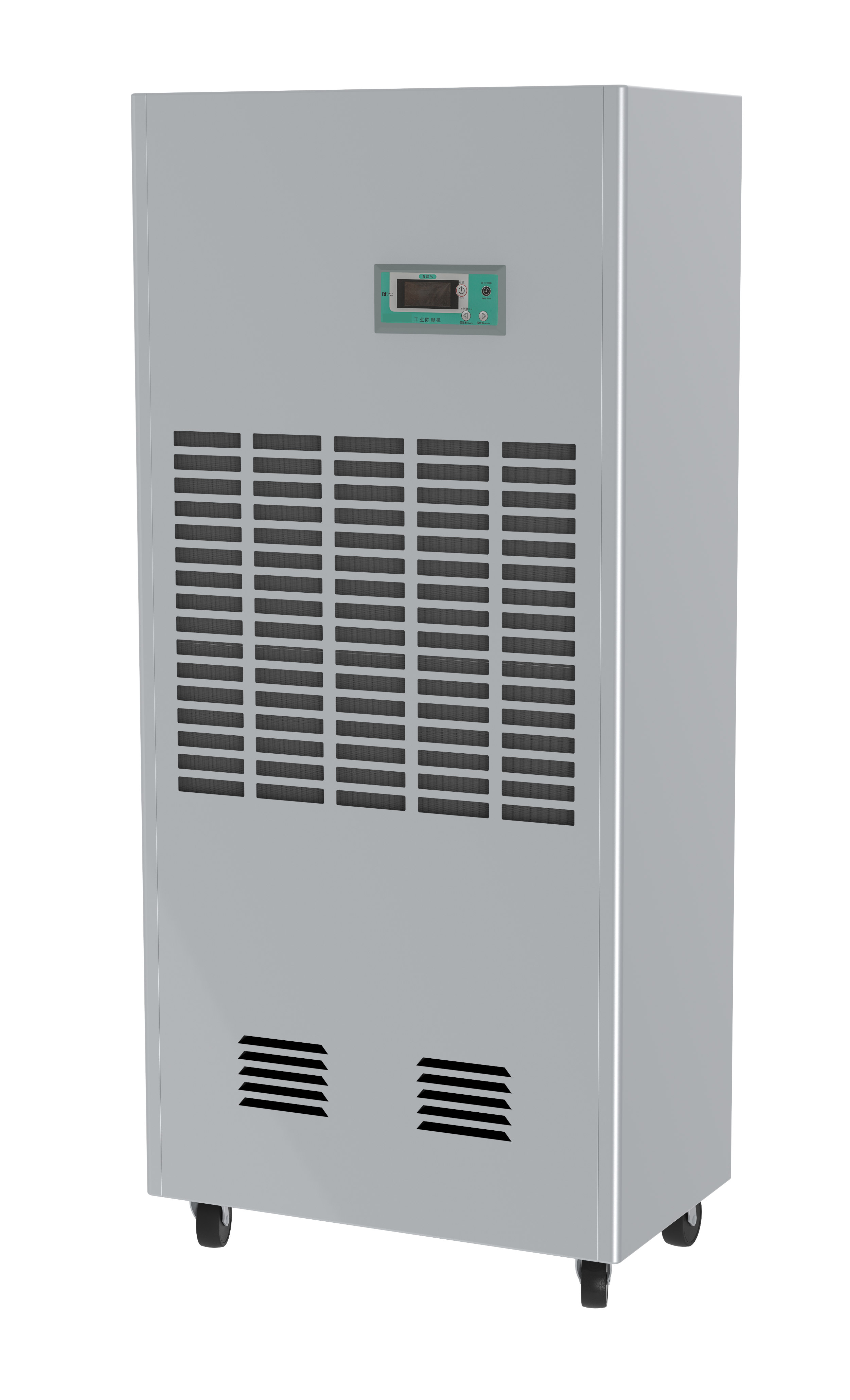 车间除湿机的外循环:在正常开机的情况下通过风机的运行潮湿的空气从进风口吸入经过蒸发器蒸发器将空气中的水份吸附在铝片上变成干燥的空气经过冷凝器散热从出风口吹出。