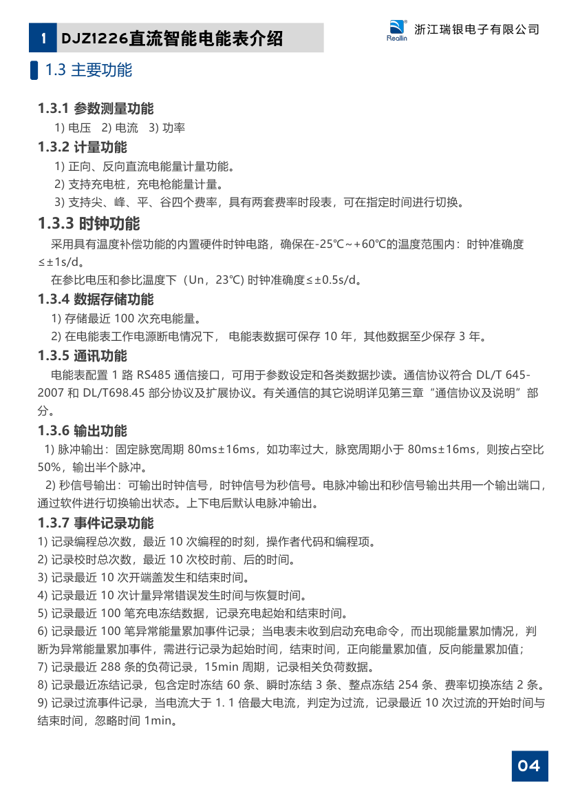 本电能表技术指标符合 GB/ T3 3 7 0 8 -2 0 1 7《静止式直流电能表》标准的要求,1 路/2路 RS4 8 5 接口支持