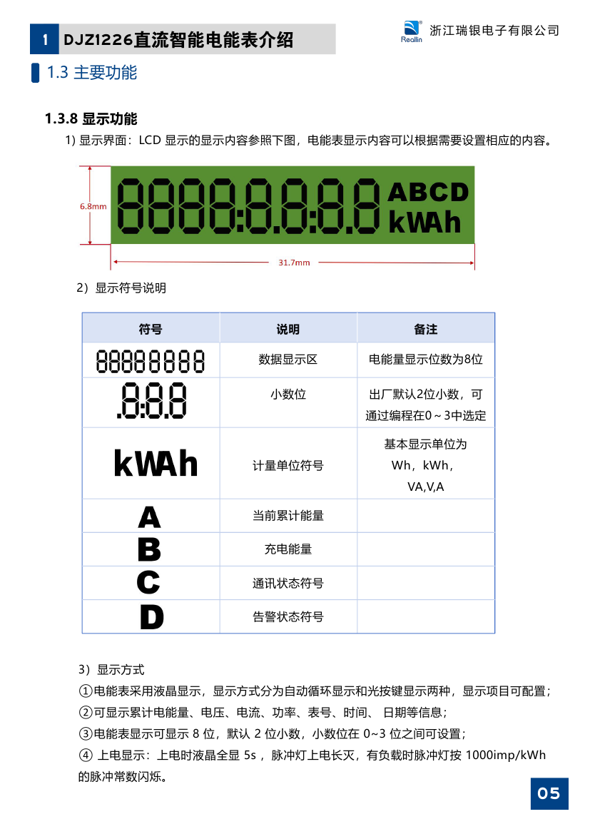 本电能表具有液晶显示、电量计量、时钟、RS4 8 5 通讯、电脉冲及秒信号输出、瞬时数据测量及监测等功能,适