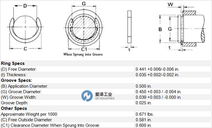 WALDES TRUARC挡圈卡环卡簧5103-50技术参数