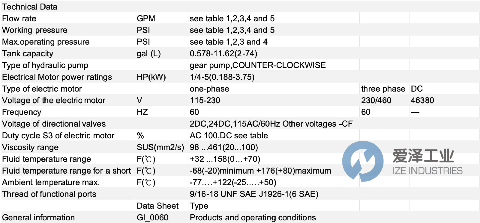 ARGO HYTOS液压动力单元SMA 05系列规格描述
