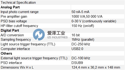 SiTek SEEPOS 是一款功能全面的PSD信号处理工具,专为PSD系统的开发而优化。高速PSD电子器件结合数字信号处理和高速USB数据传输,构成了一套强大的测量系统。凭借其宽广的动态范围,它可以处理来自直流光源以及调制光源的纳瓦 (nW) 到毫瓦 (mW) 的光功率。