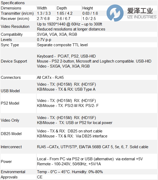 ROSE延长器ViewLink CATx系列技术参数