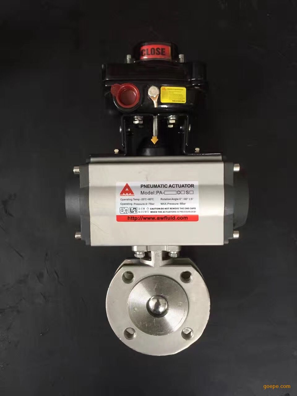 气动活塞执行机构分有弹簧式和无弹簧式两种。故障下要求阀全开或关闭时配有弹簧式(靠弹簧的恢复张力复位),故障下要求保位时,配无弹簧式。它主要由缸体、弹簧、活塞、活塞杆、前后缸盖、齿条、输出轴等零部件组成。对两位开关阀,需配电磁阀以及行程开关等;对比例式调节阀,需配定位器。由气动双活塞齿轮齿条执行器和超短法兰距球阀组合而成,阀体部分同“1”电动球阀阀体一样。
