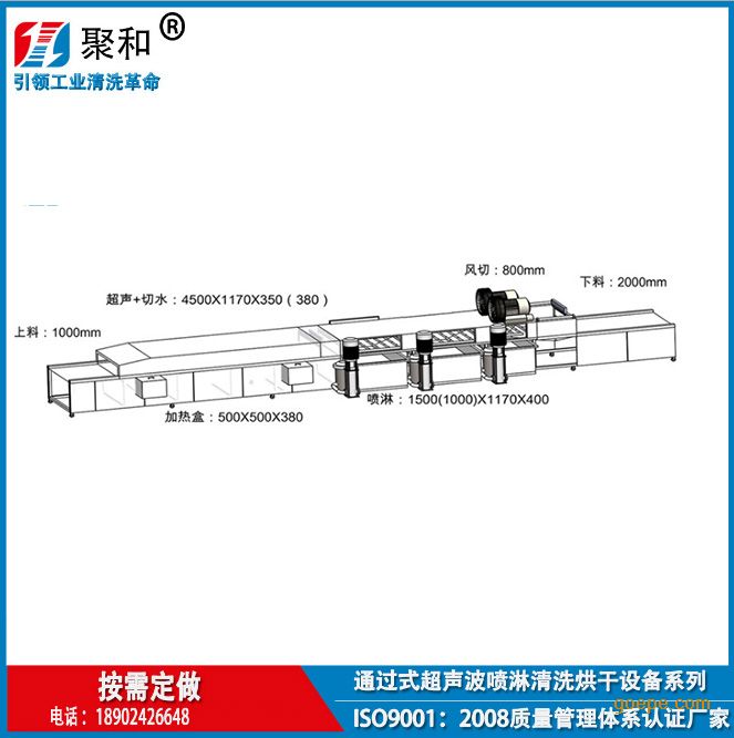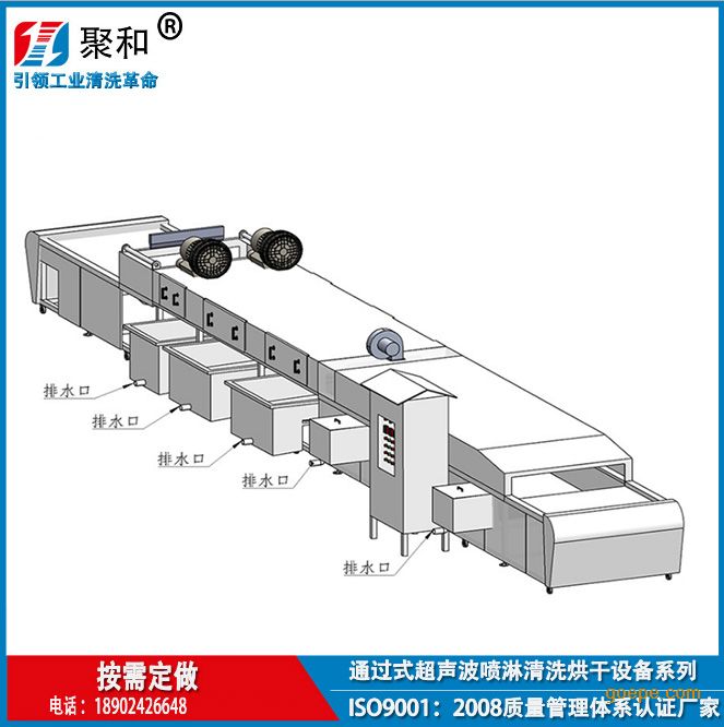 3.佛山南海冲压五金件通过式超声波清洗设备不须人手接触清洗液,安全可靠。各部分空间布局合理均留有维护通道,外观简洁美观。