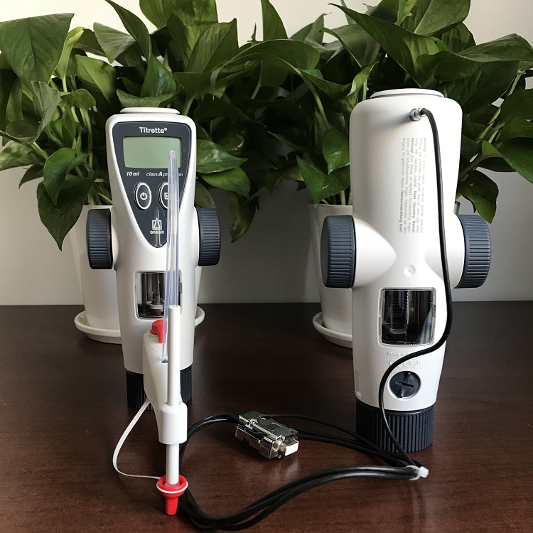 Titrette® 数字瓶口滴定器,conformity资格认证,性能认证证书。伸缩式吸液管(170 - 330 mm),回流管,2块电池 (AAA/UM4/LR03),3 个PP材质的瓶口接头(GL 45/32, GL 45/S 40 及 GL 32/NS 29/32),2个琥珀色避光观察窗