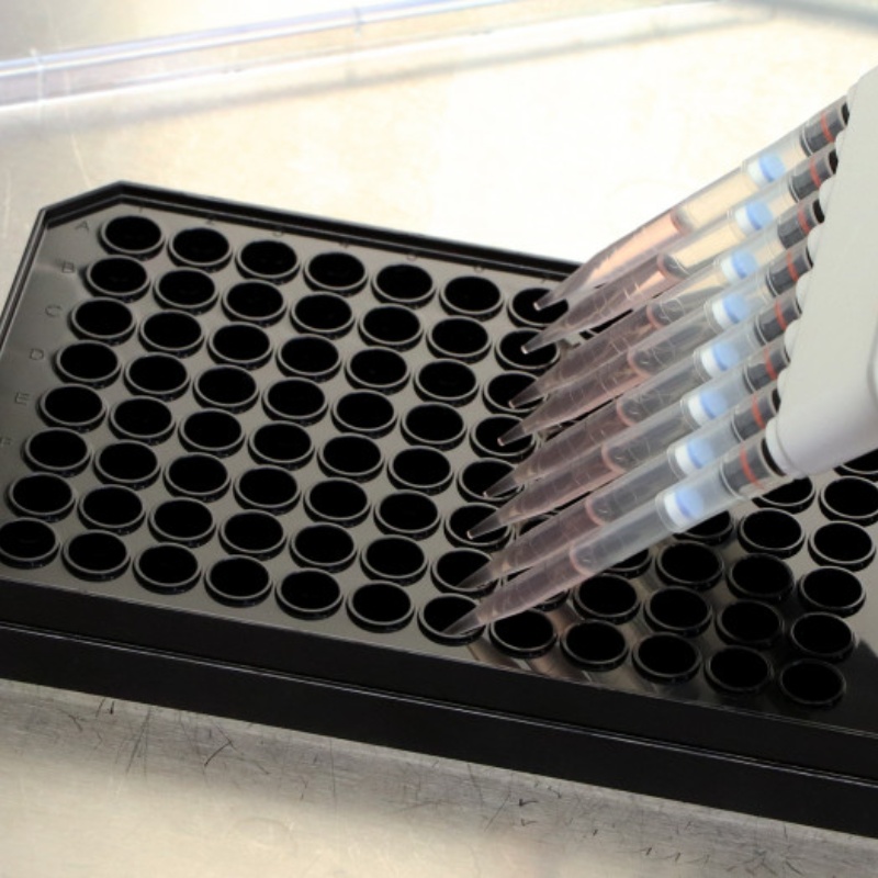 用于高通量细胞分析实验的黑色圆形孔、平底、透明的96孔培养板