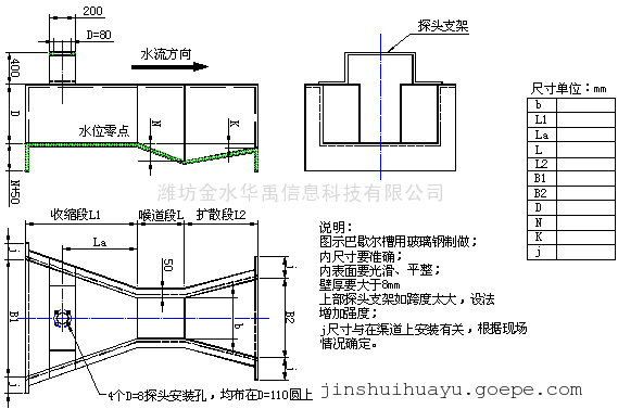 | 序号 | 流量范围(吨/小时) | 适用渠道mm | 水位范围(mm) | 临界 淹没度% |