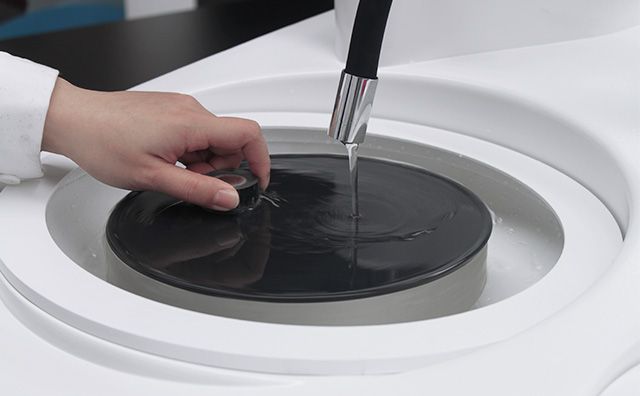 加厚设计的全铝下转盘,厚重而沉稳。支撑和转动更显平稳,同时大质量的底盘具备足够的热容对冲温升,能防止样品粗磨时的过热现象。