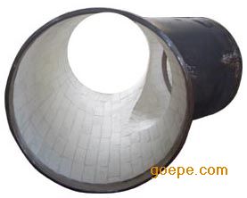 耐磨陶瓷弯头是采用我公司特制的耐温强力胶将特种刚玉耐磨陶瓷片粘贴在钢管弯 头内部,解决了火电、冶金、钢铁、水泥等行业输料弯头部分磨损严重的问题,同时采用钢管弯头和耐磨陶瓷片粘贴综合解决的方法,便于快速更换和施工。根据工作条件不同,生产工艺也有所不同,可采用直接粘贴、螺栓装卡法。
