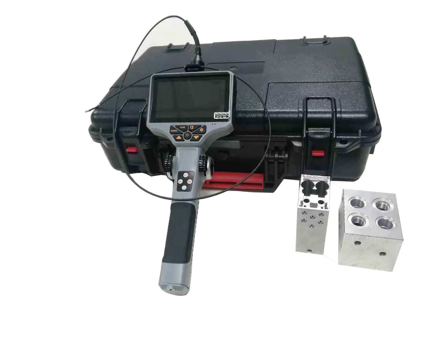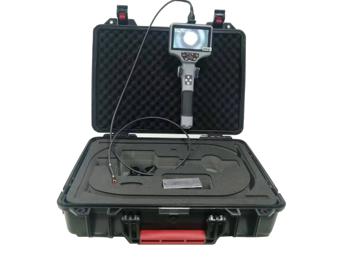 手持便携式内窥镜是集光学、精密机械、电子技术和显微摄像技术于一体的新型无损探伤仪器,操作简易;对检查各种工业管路或复杂狭小的设备内部空间的腐蚀、裂纹、焊缝、异物、磨损以及零部件内部的加工等常规无损探伤技术无法触及到非可视部位表面缺陷均可进行细致全面的检测。
