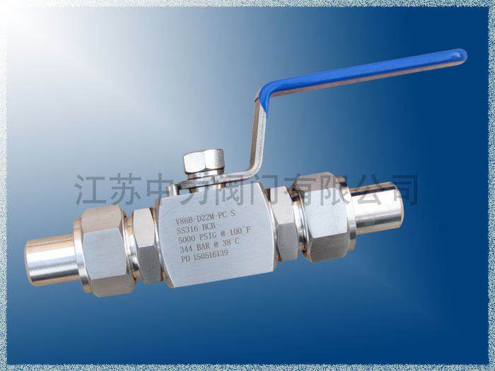 焊接式进口高温高压球阀是以压缩空气为动力,阀杆带动阀芯在阀体内转动90°可以实现全开—全闭动作的阀门。它的型号为VC86D,公称口径是DN6-DN50,压力为6000Psi, 它在管道上主要用于切断、分配和改变介质流动方向;阀座采用特殊双斜面弹性密封圈设计、可靠的倒密封杆、防火防静电功能、自动泄压和锁定装置等结构特点。由于焊接球阀结构特殊、新颖、实用、重量轻耗材少,在现今的环保节能经济形式下,是一种很好节能环保产品。它的大枢轴结构保证在高压下准确的球体中心位置,保证了阀门良好的操作性能;标准阀座采用弹簧结构,将阀座推向球体,保证了良好的进出口双向密封性能;利用自带的排放阀,阀体中腔可向外排放;枢轴采用防吹出保护结构,有效地防止泄漏;低磨擦系数的轴承,使得扭矩减少到很小,便于阀门启闭;阀杆与阀体有效的接触,使防静电接地装置性能优越等。