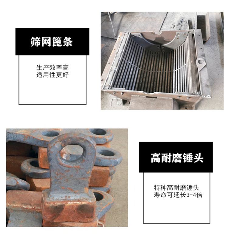 锤式破碎机主要是靠冲击能来完成破碎物料作业的。锤式破碎机工作时,电机带动转子作高速旋转,物料均匀的进入破碎机腔中,高速回转的锤头冲击、剪切撕裂物料致物料被破碎,同时,物料自身的重力作用使物料从高速旋转的锤头冲向架体内挡板、筛条,在转子下部,设有筛板、粉碎物料中小于筛孔尺寸的粒级通过筛板排出,大于筛孔尺寸的物料阻留在筛板上继续受到锤子的打击和研磨,直到破碎至所需出料粒度*后通过筛板排出机外。
