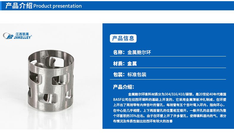 金属鲍尔环填料材质分为304/316/410/碳钢,是20世纪40年代德国BASF公司在拉西环填料的基础上开发的,它采用金属薄板冲扎制成,在环壁上开出了两排带有内伸舌叶的窗孔,每排窗有五个舌叶弯入环内,指向环心,在中心处几乎相搭,上下两层窗孔的位置相互错开,一般开孔的总面积约为整个环面积的35%左右。由于在环壁上开了许多窗孔,使得填料层内的气、液分布情况及传质性能比拉西环有较大的改善。