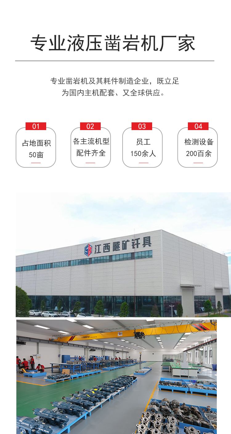 江西隧矿钎具机械制造有限公司位于萍乡经济技术开发区彭高镇工业园,整体占地50余亩,厂房面积18000余平米,现有员工150余人,公司拥有现代化生产线5条,从瑞士、德国、日本引进200余台套生产及检测设备,可实现高端钎具年产量10000-12000吨,具备开发和生产制造液压凿岩设备的先进技术;通过不断改进迭代升级,产品覆盖多种市面主流机型凿岩机配件、包括钎杆,钎头,钎尾,连接套,载齿,机头、凿岩钎具、矿用钎具,产品广泛应用于矿山开采、隧道挖掘、工程建设项目,立志成为行业内的高端钎具生产制造企业。