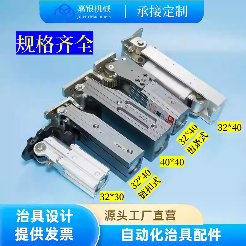 动力与执行单元:标配32mm/40mm缸径的标准工业气缸作为核心驱动源,提供稳定可靠的直线动力。可选配气缸旋转器,将气缸的直线运动直接转换为旋转运动,构成紧凑的旋转驱动方案。