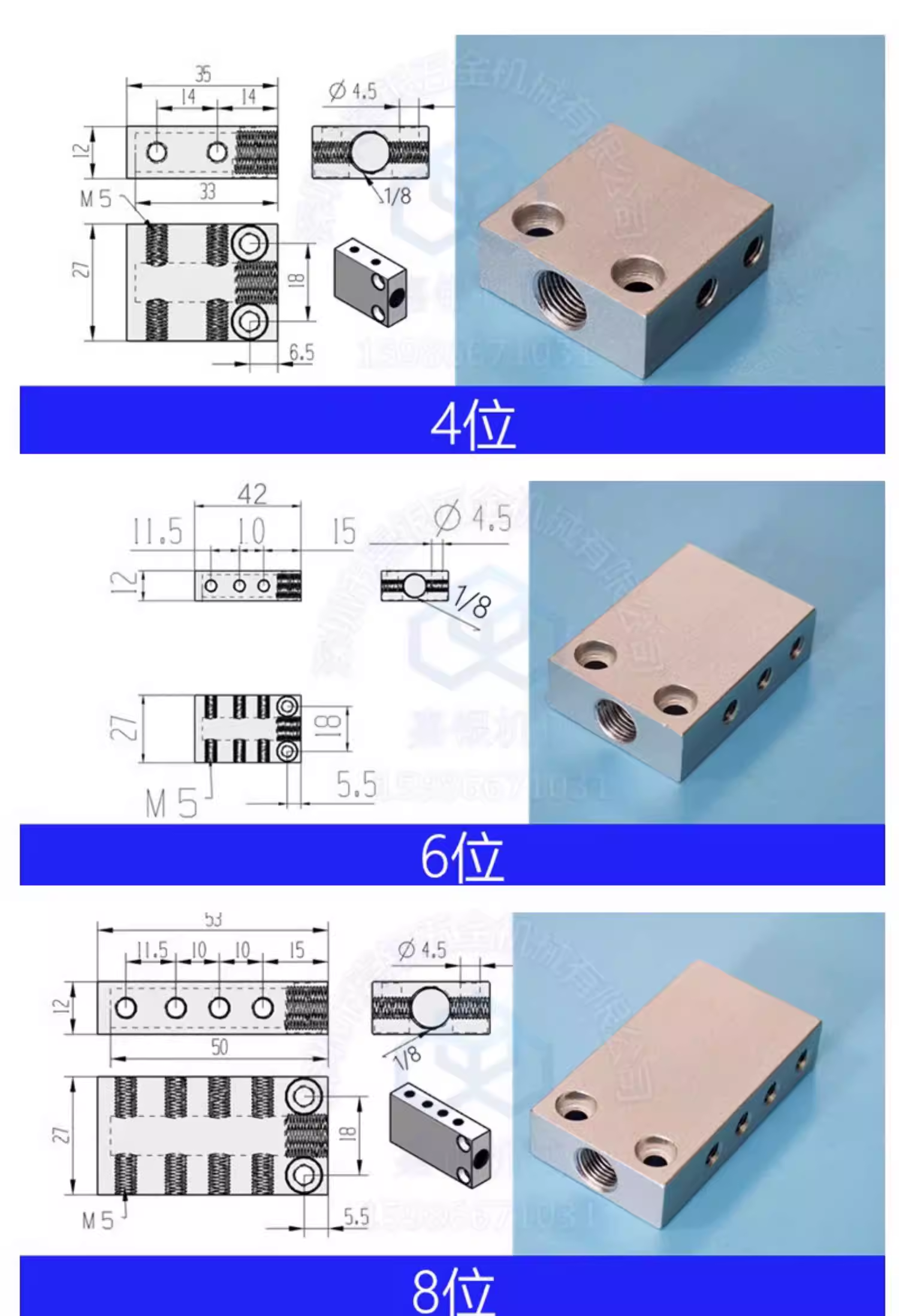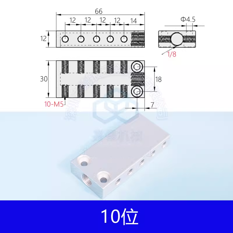 1进6出:6位气排,适用于多设备气动控制