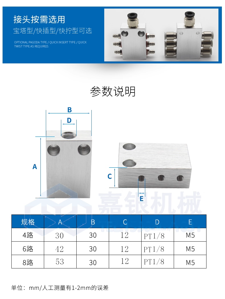 气管外径:选择对应规格的接头(4mm、6mm等)