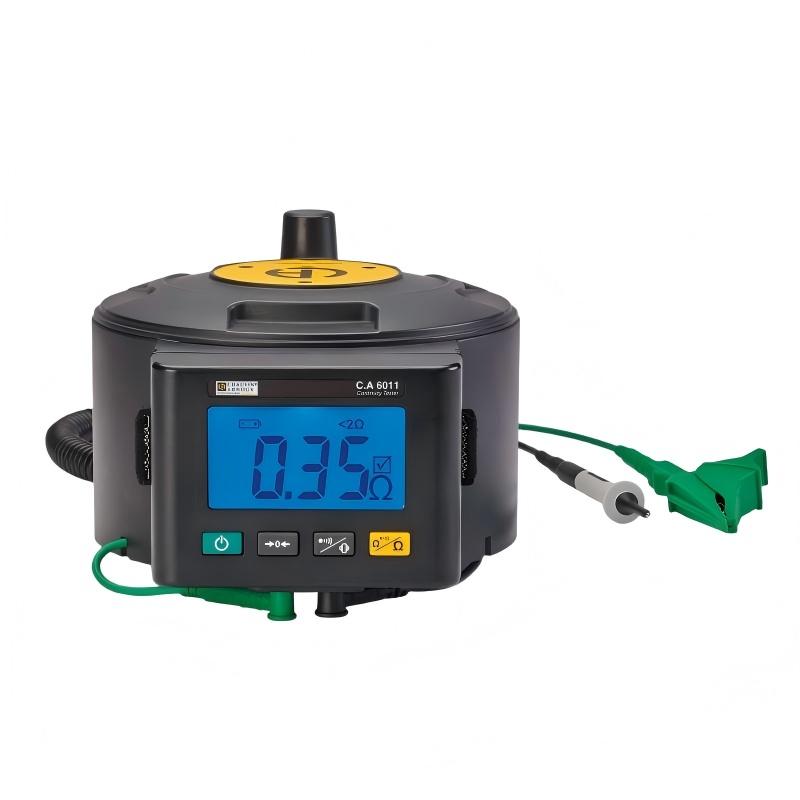 CA6011 用于对电流为 20 或 200 mA 的电气设备进行导通性测试。检查保护导体的导通性是*常见的应用领域。CA6011 可测量高达 20 Ω 的导通性和高达 200 Ω 的电阻,也可用于检查防雷和等电位连接的接地导体。