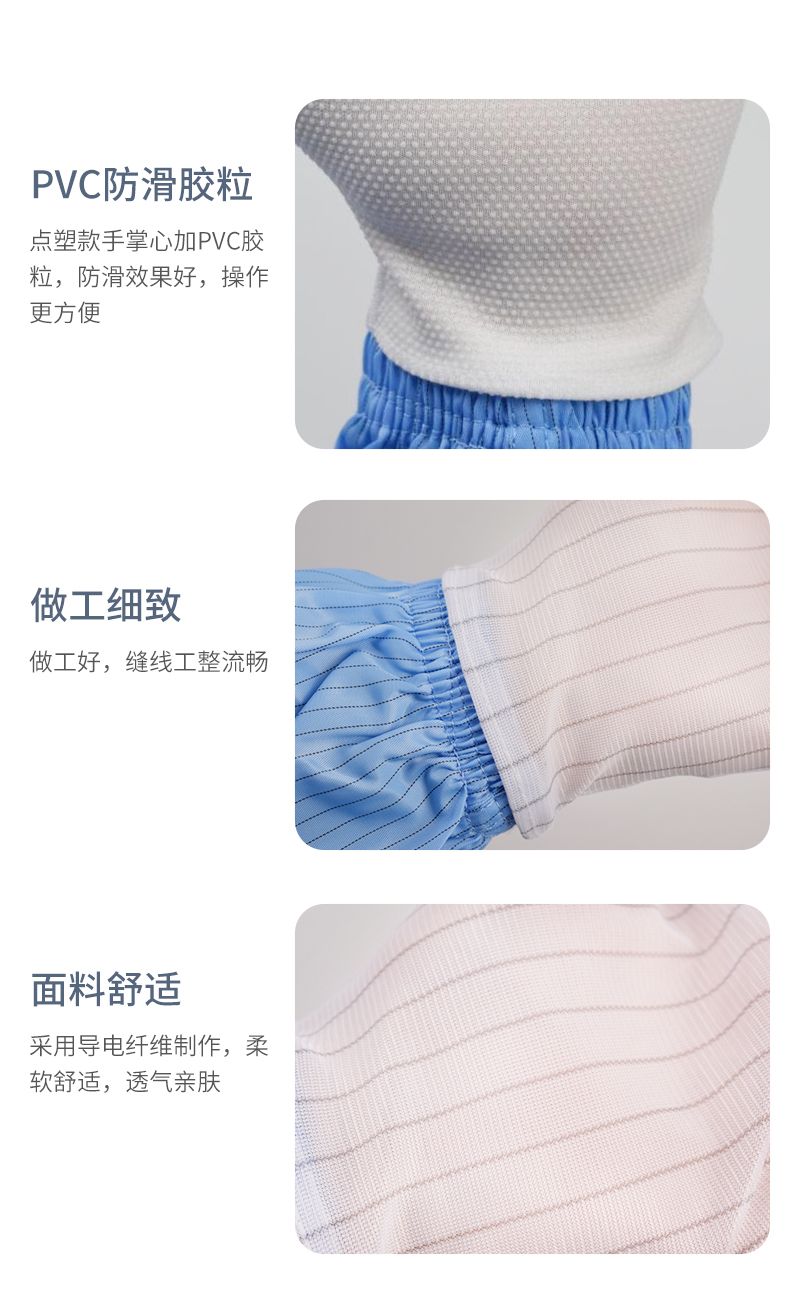 康惠洁洁净室防静电条纹手套电子无尘室五指防尘点塑手套