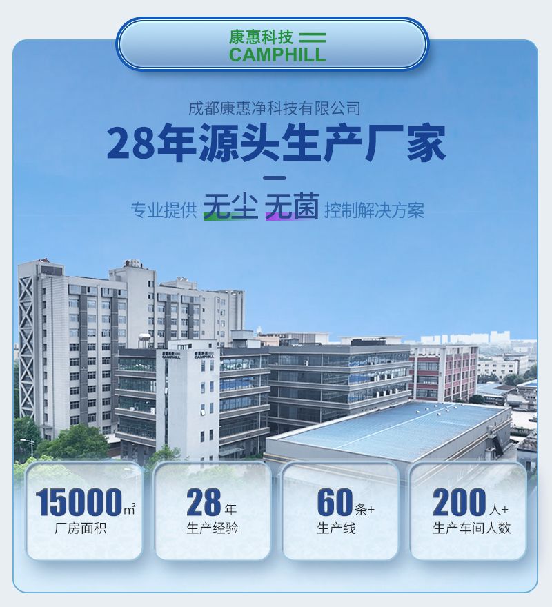4000 平方米,建设有百级到十万级洁净车间;配备4层楼车间。公司主营防静电无尘服、无尘布、条帽、口罩、一次性手套、清洗及各类 PPE 防护产品。聚焦洁净、防静电防护领域,为半导体、汽车电子、YL、食品等高端制造行业提供一站式防护解决方案。