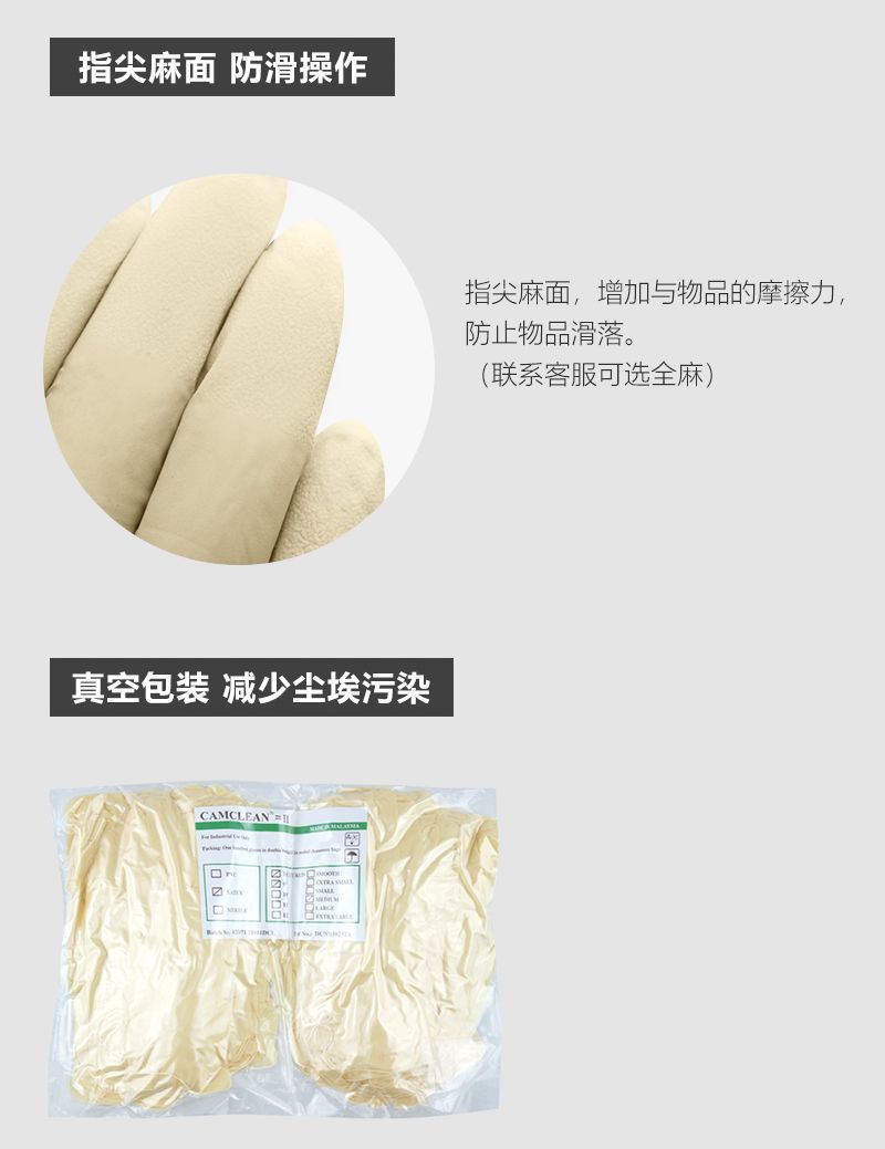 康惠洁一次性乳胶净化手套千级洁净室无尘车间无粉麻面 米黄色9寸/12寸
