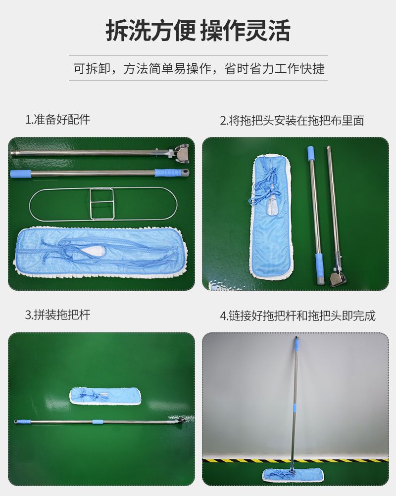 选择防静电无尘拖把,先分清使用场景:工业洁净室需选表面电阻合规、带防静电认证的无尘布款,家用办公可选基础款。优先选涤纶