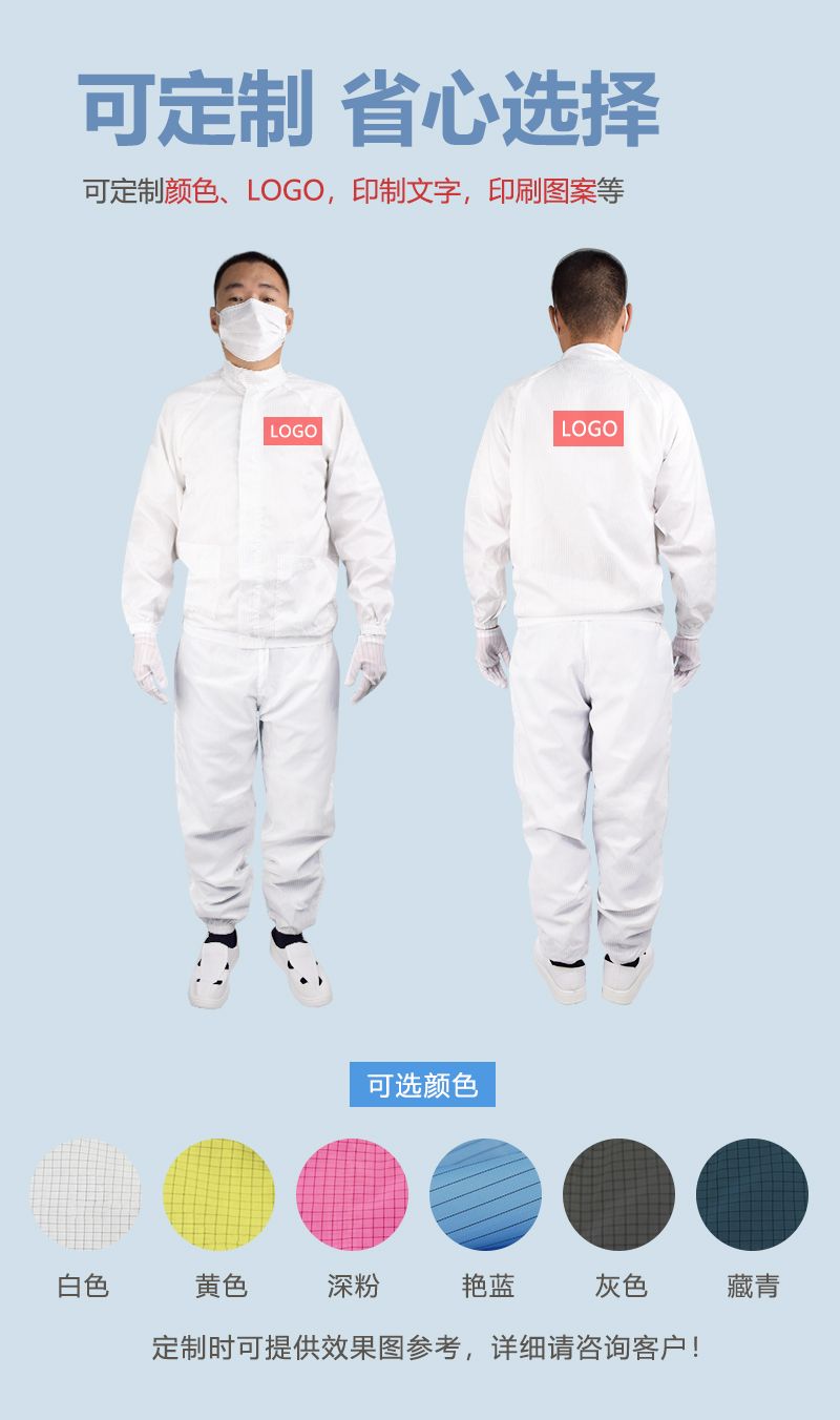 具备防尘、防静电、不掉屑、不粘毛的核心特点,可满足不同洁净与防静电作业场景需求。产品提供多种尺码,同时支持颜色、尺码、