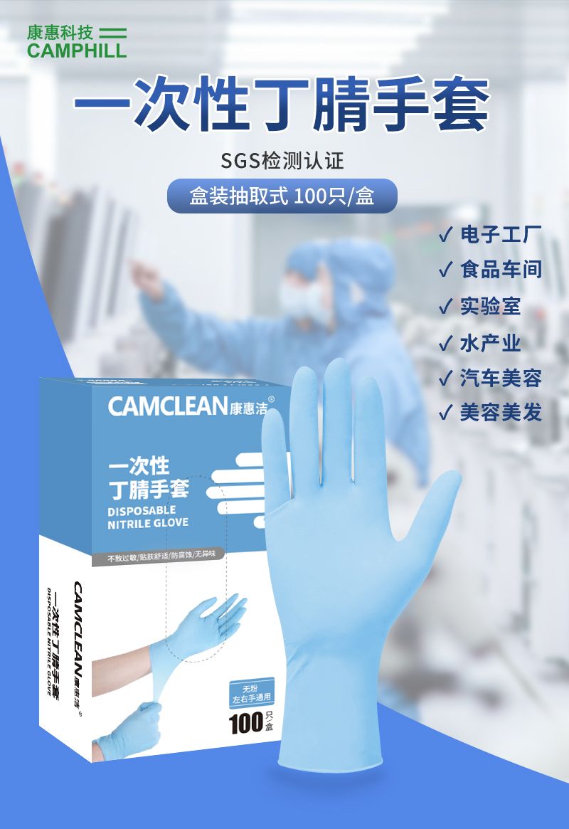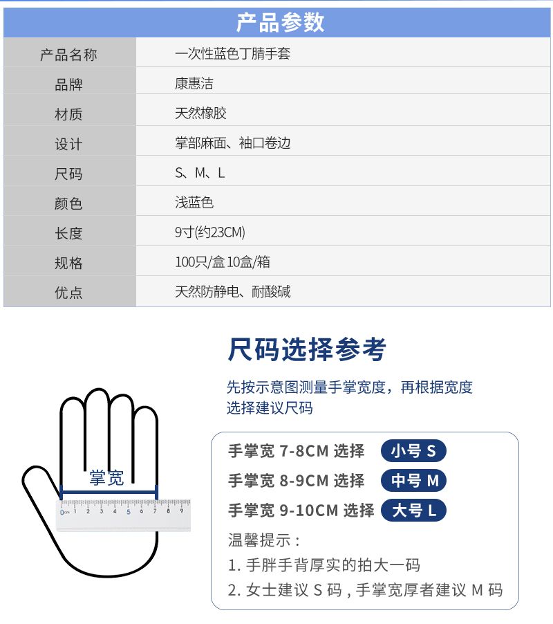 康惠洁一次性蓝色丁腈手套