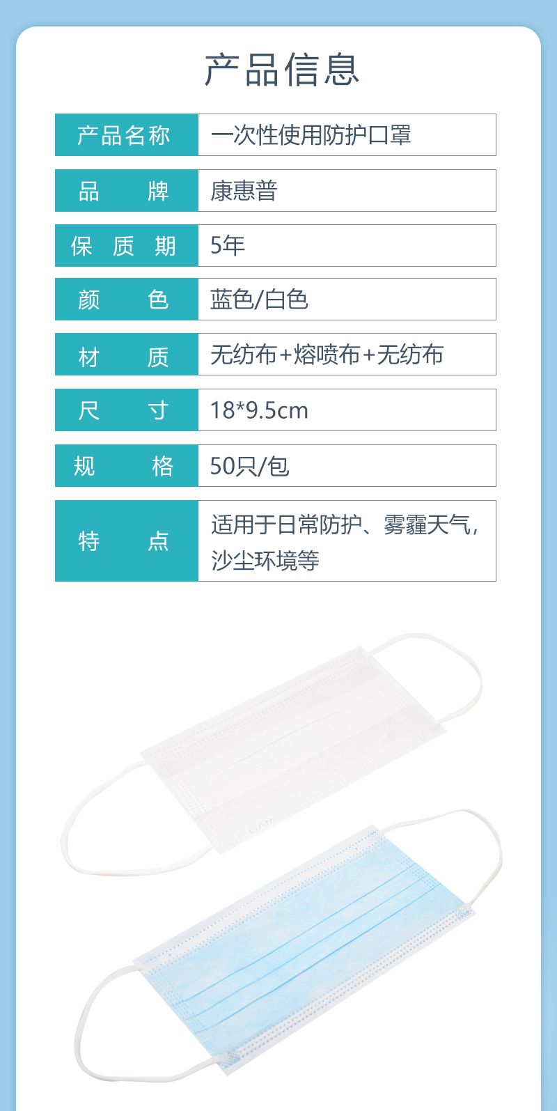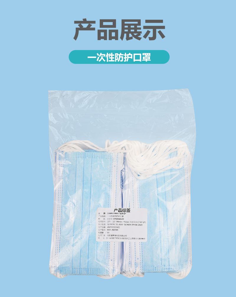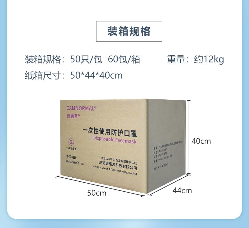 康惠普一次性使用防护口罩,采用纺粘无纺布
