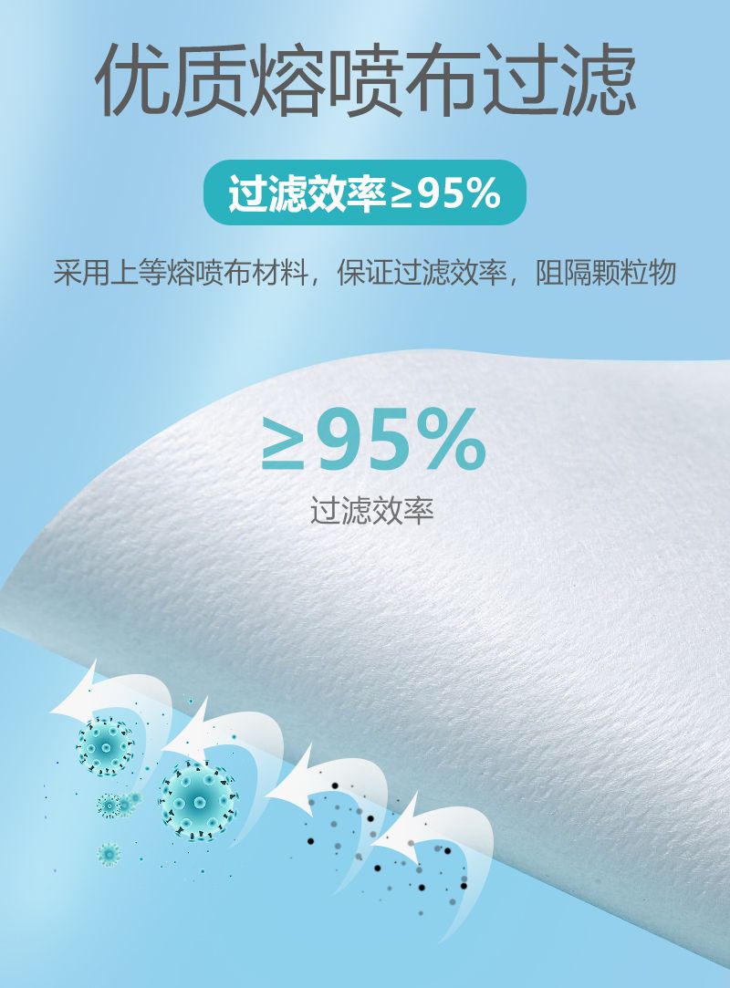 + 熔喷布 + 纺粘无纺布材质,3 层防护结构,