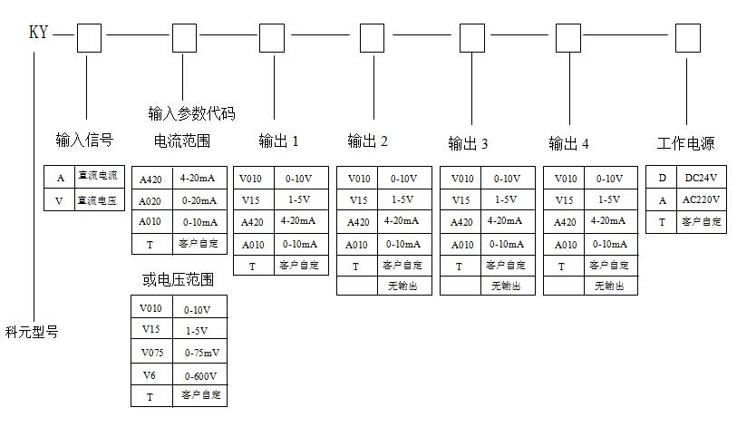 一进四出信号分配器,一路4~20mA直流信号输入,隔离变送输出四路直流信号,输出1为4~20mAdc;输出2为4~20mAdc;输出3为4~20mAdc;输出4为4~20mAdc直流电流信号;辅助电源为直流24V。