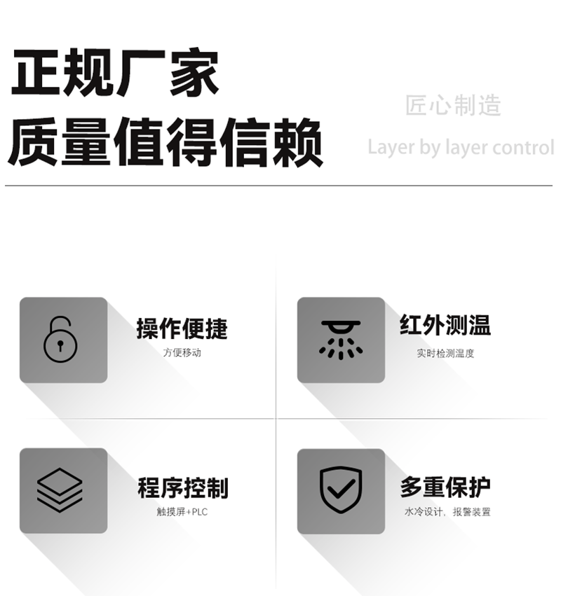 3·加压方式采用新型伺服电动加压模式,控制方式采用伺服电机精确控制,即可精确压力控制又可精确位置控制,运行压力精度精确到公斤级,位置控制精确到0.001mm运行平稳精准,不超压。也可采用传统液压的方式