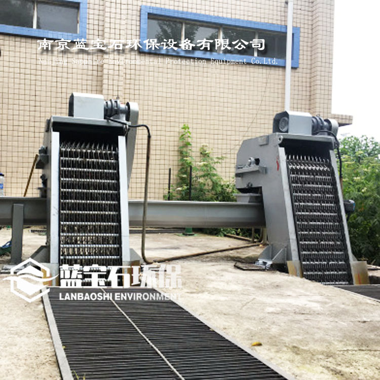 齿耙固定于链条上,链条沿导轨运行,齿耙从栅条的后部下行,从底部运行至栅条前部,从下向上地将被栅条拦住的漂浮物顺着挡板捞至卸渣口处,卸入栅渣车中,液体则通过耙齿间形成的栅隙流过去。控制系统实行全自动控制,可根据时间自动起、停,发生过扭矩会及时报警并立即自动停机,在无人看管下照样进行工作。