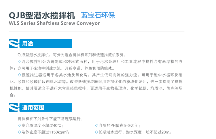 三、QJB型潜水搅拌机使用条件: