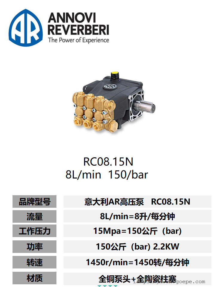 兰远机械(上海)有限公司成立于2013年,是高压柱塞泵、高压清洗机附件等产品提供商,可为客户提供定制的系统解决方案和服务。我们具有深厚的技术基础及丰富的应用经验,可以免费为用户提供系统设计、产品选型指导。 公司自成立以来引进国外产品和技术,代理销售多个国外品牌的高压柱塞泵领域产品,并提供全部技术支持及售后服务。目前,兰远上海的主营业务有以下产品: 1、意大利AR艾热高压柱塞泵及泵组,以及调压阀、安全阀、喷枪、减速机等附件 2、意大利PA高压清洗机附件,调压阀、溢流阀、安全阀、高压喷枪、喷嘴、减速机等 3、意大利HAWK霍克高压柱塞泵及泵组系统 4、意大利UDOR雾德高压柱塞泵及泵组 5、意大利INTERPUMP英特高压柱塞泵及泵组 6、意大利COMET彗星高压柱塞泵及泵组 7、ABB、西门子三相异步电机| 品牌: | AR |