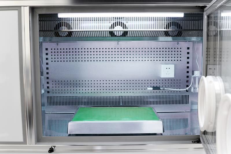 u 箱体上有二个操作入口,并用乳胶长手套进行隔离,避免人工操作过程中对恒温恒湿条件的影响。