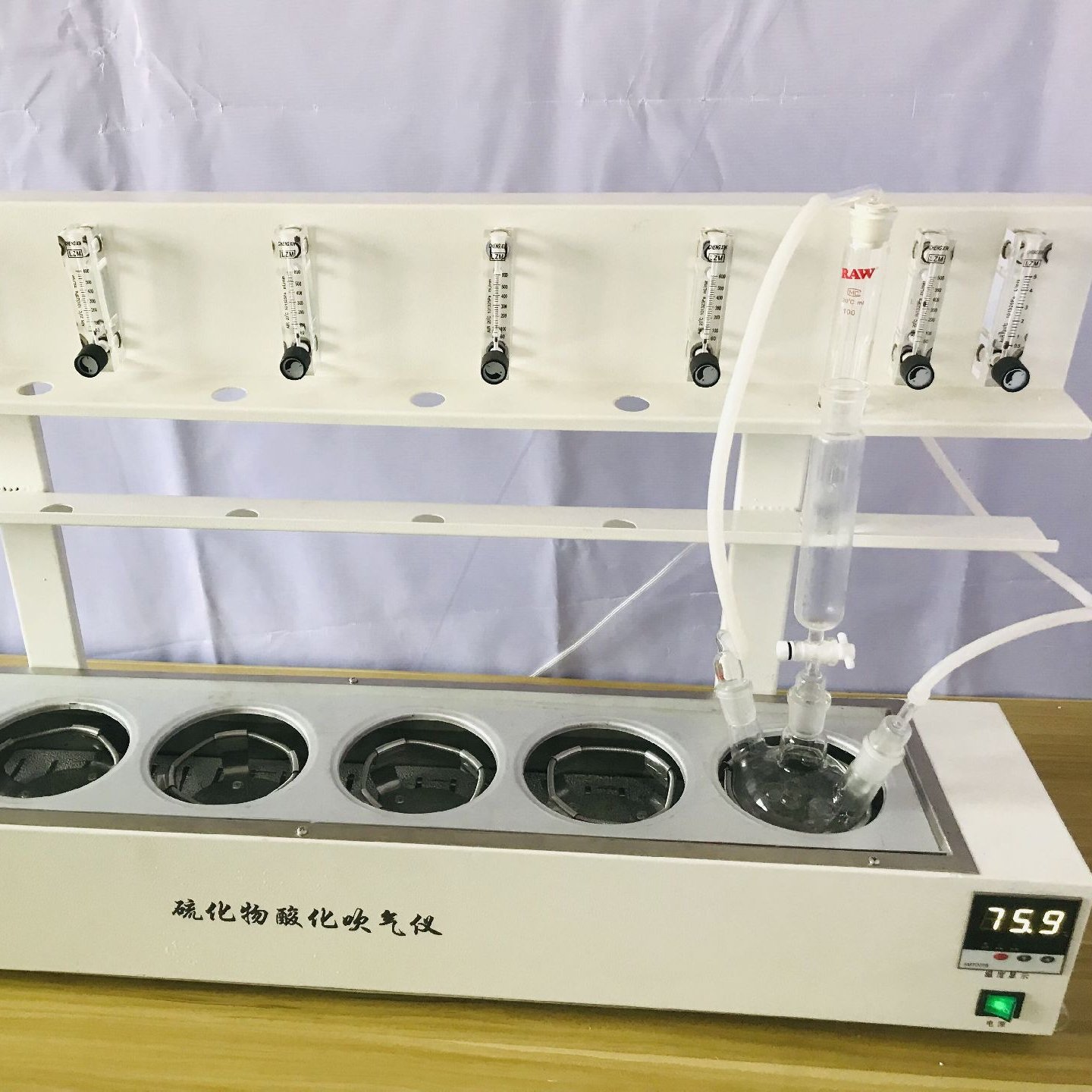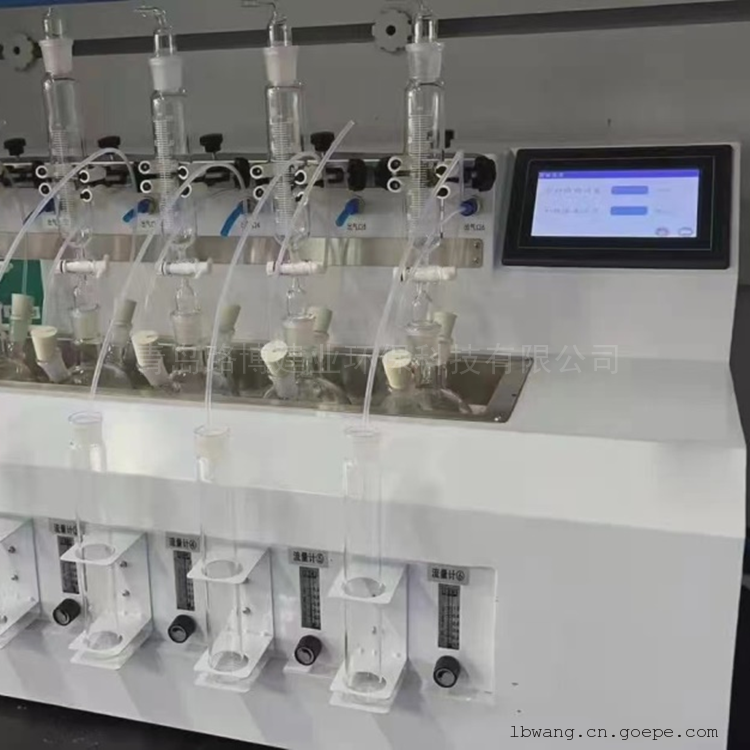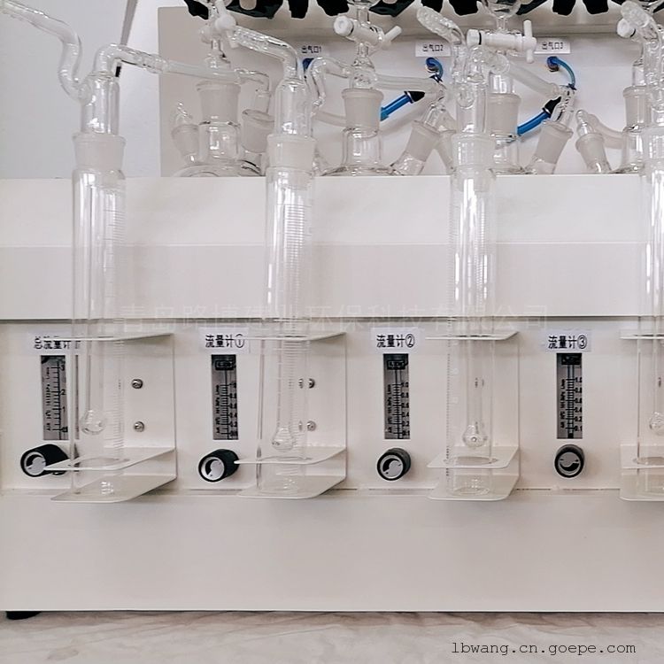 HJ1226-2021水质硫化物的测定 亚甲基蓝分光光度法》和《HJ/T 60-2000水质硫化物的测定 碘量法》一款专门用于检测水中硫化物的前处理仪器。该仪器该仪器采用垂直加酸、氮气吹脱、酸化吸收等一体化设计,一次可处理1-6组样品。每个单元采用独立的转子流量计控制氮气流速;PID加热控温程序,自动升温至设定温度,缺水自动报警,自动补水,从而大大节约硫化物前处理时间,适合实验室内多个、尤其大批量硫化物样品的测定工作。