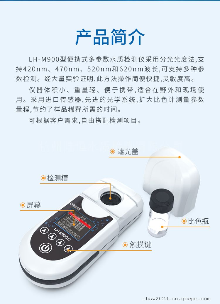 | 多参数便携式水质检测仪(5项) | LH-M900 | 余氯 | 0-3mg/l 0-12mg/l |