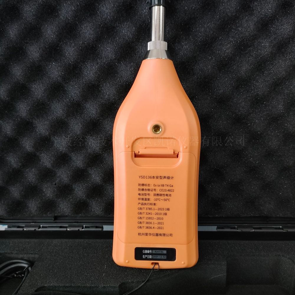 杭州爱华新款本安型噪声检测仪YSD136(本质安全型,防爆标志为:Ex ib IIB T4 Gb),是一种模块化、多功能声级计。采用了先进的数字检波技术,使得仪器的稳定性、可靠性大大提高。而且动态范围大、操作简单、用途广。外壳采用C4120 NC防静电材料,外形美观,重量轻,便于携带。仪器具有大容量存贮、录音、U盘等功能。执行如下标准:
