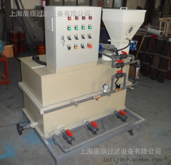 干粉溶剂制备过程是通过各个溶液槽分级逐步完成的,溶液槽之间隔开,保证每个溶液槽内的***佳反应时间和恒定浓度,避免在预制槽和药液储存槽之间有任何直接通路,自动控制系统与储存槽上的液位控制器相连,一旦液位达到低位,触发进水电磁阀打开,干投机启动,投加量安装水量设定,以获得精确浓度,当液位达到***高点,此循环过程就停止,当然搅拌器还按设定时间继续工作。