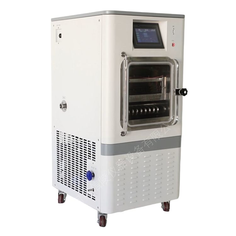 LGJ-10FD(电加热)冷冻干燥机,原位冻干。采用液晶触摸屏操作面板,可触屏操作制冷机的开关机、真空泵的开关机、编辑冻干工艺配方,显示冻干曲线、样品温度、冷阱温度、真空度、运行时间等数据。具备自动控制功能,操作人员可提前编辑冻干工艺,启动后设备按预设工艺一键完成自动预冻、自动开启真空泵、自动升华等流程,减少人工干预。改变了过去干燥过程的繁琐操作,防止了物料的污染,实现了干燥升华的自动化。可在升华阶段控制样品的升温速率,提高升华效率。该机型具备搁板加热和可编程功能,可以记忆冻干曲线,自带U盘提取功能,方便用户观察物料的冻干过程。真空冷冻干燥机广泛用在医学、制药、生物研究、化工和食品等领域。经冷冻干燥处理的物品易于长期保存,加水后能恢复到冻干前状态并保持原有生化特性。