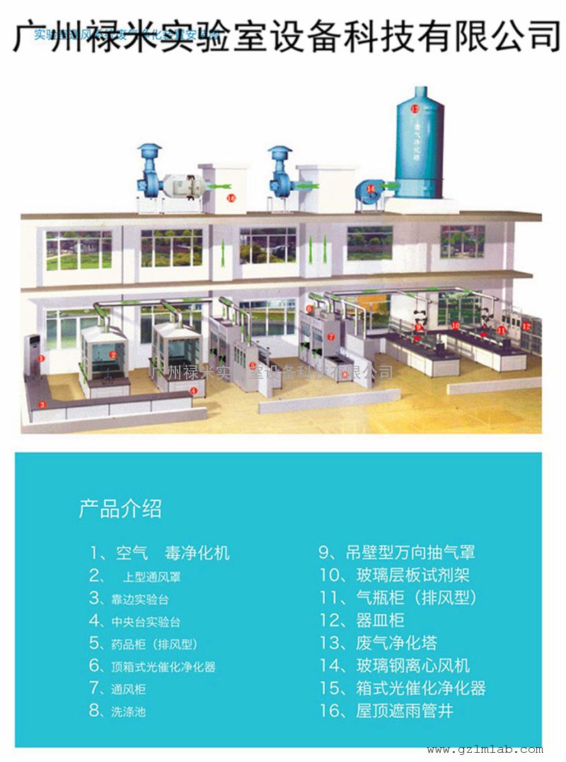 实验室通风要求新风全部来自室外,然后100%排出室外,通风柜的排气不在室内循环。化学实验室换气要求每小时大于10次,物理实验室每小时大于10次,实验室无人时换气可减少为6次。实验室通风柜设计数量要足够,并且不作为的室内排风装置,仪器室或产生危险物质的仪器上方设局部排风系统。