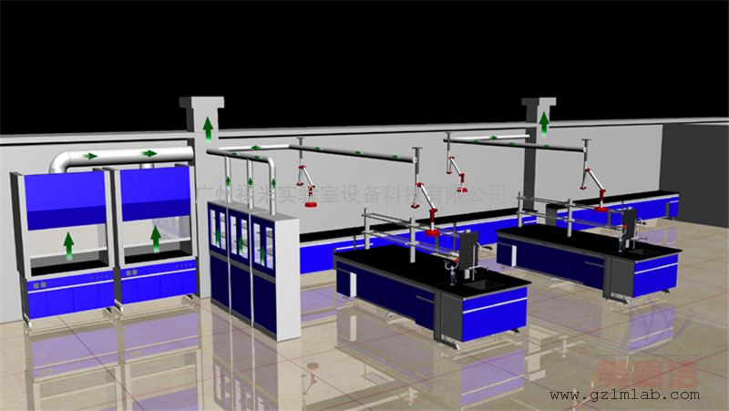 实验室通风要求新风全部来自室外,然后100%排出室外,通风柜的排气不在室内循环。化学实验室换气要求每小时大于10次,物理实验室每小时大于10次,实验室无人时换气可减少为6次。实验室通风柜设计数量要足够,并且不作为的室内排风装置,仪器室或产生危险物质的仪器上方设局部排风系统。