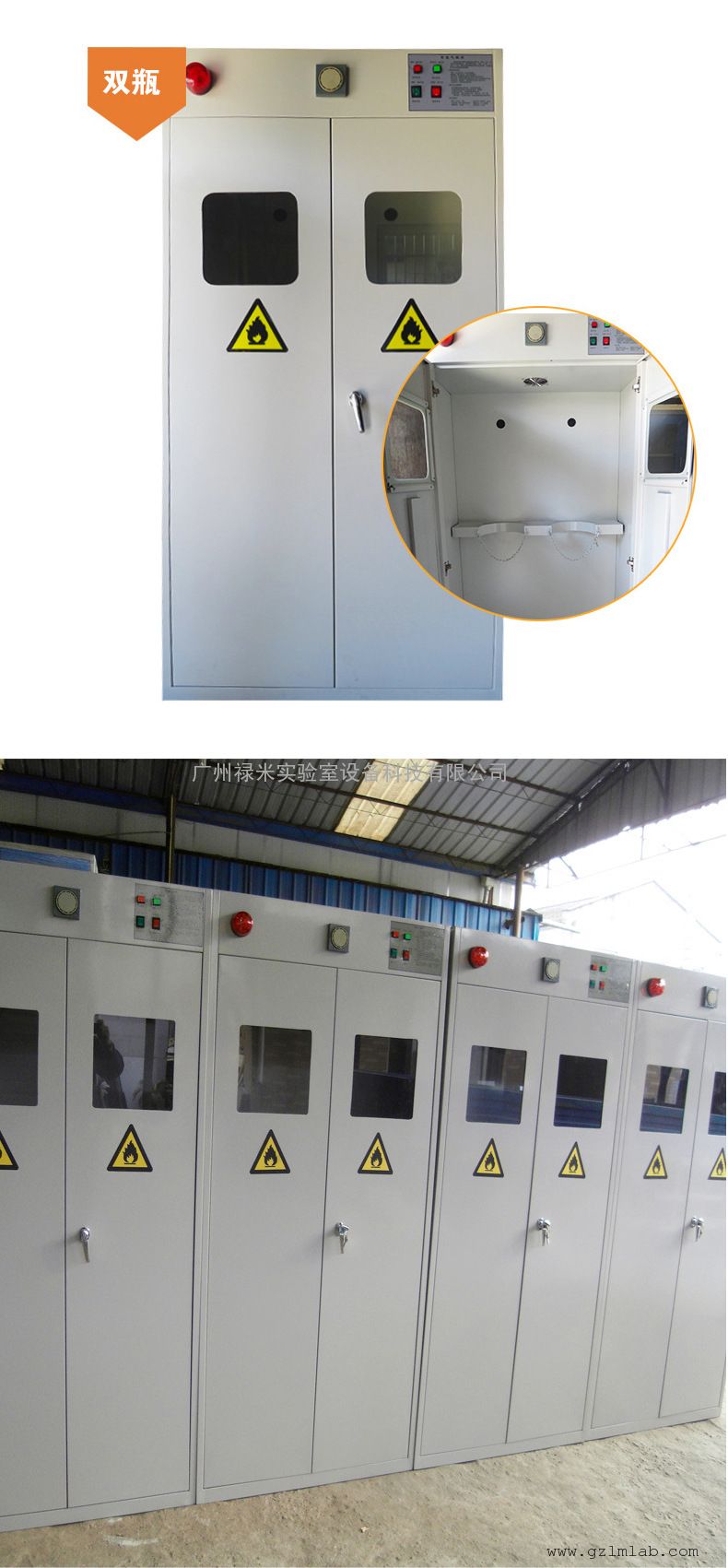 带报警功能,颜色:灰白;容量:2只气瓶;规格:双门;外形尺寸:180*90*45(H×L×W/cm) |