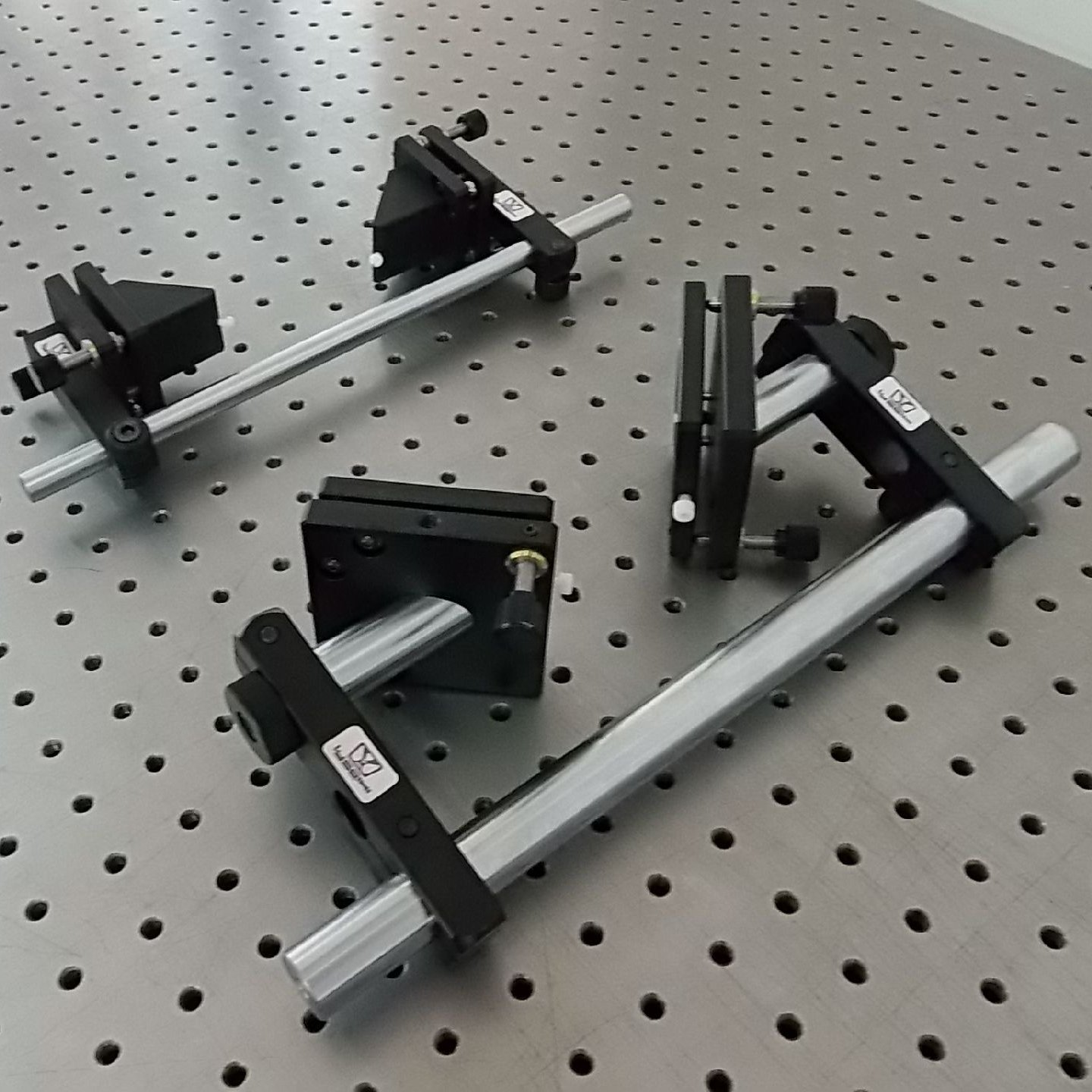 光束折转架可将光束改变方向或高度,可夹持多种直径的反光镜及棱镜,适应不同直径的光束,镜座可360°旋转,并可±4°倾斜调整,调整机构采用M6x0.25mm超细螺杆驱动,碟形弹簧复位,精度高,稳定性特佳,支杆采用标准直径不锈钢,安装方便,美观适用,装卡大直径的镜片。