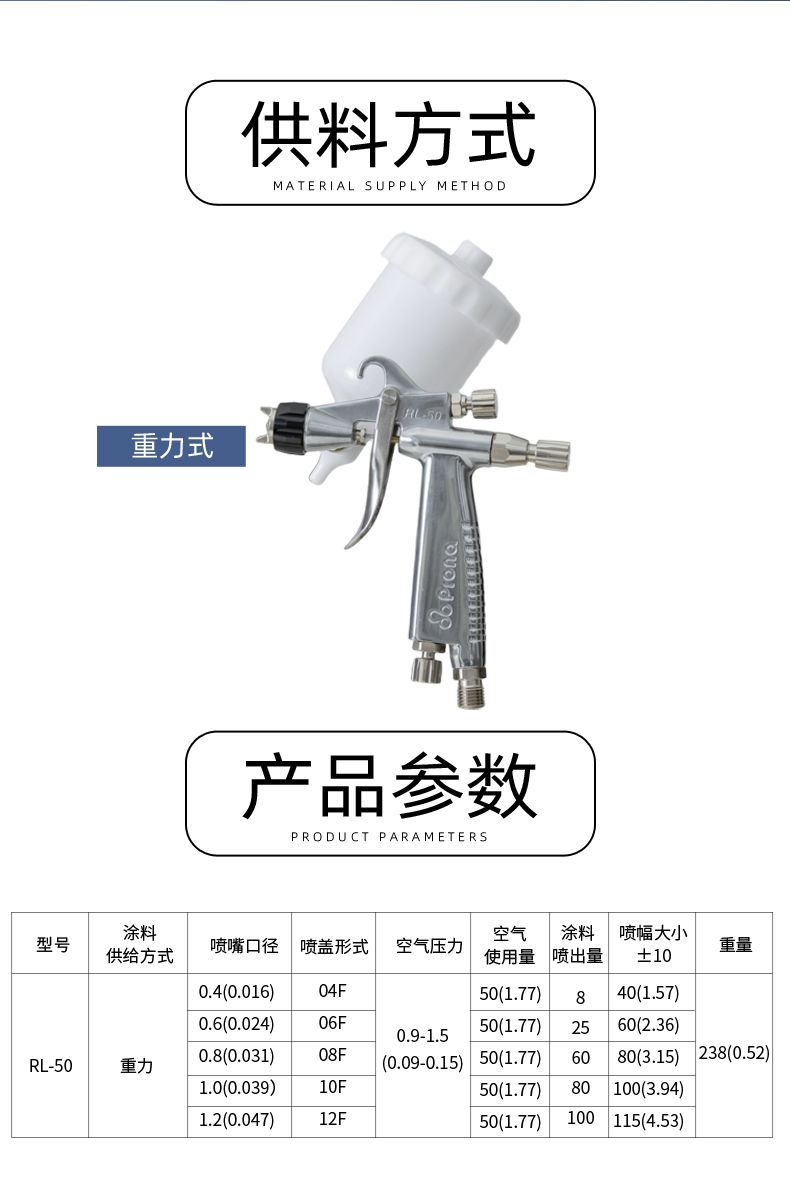 Prona宝丽RL-50喷油枪 小面积家具汽车修补喷漆枪 光触媒喷枪