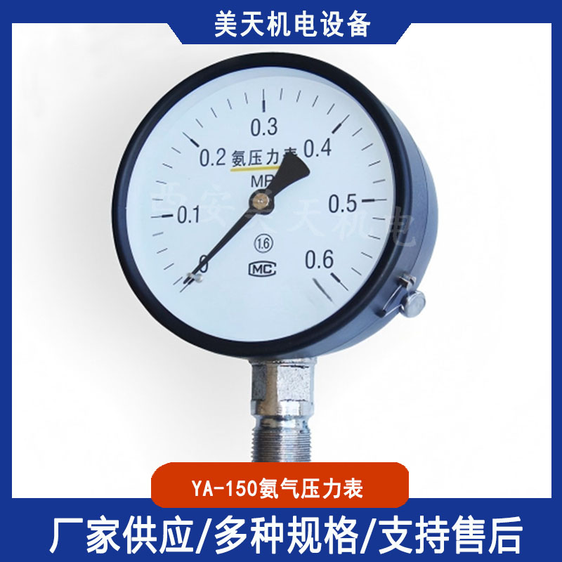 附加功能:振动场合选耐震氨用压力表(YA-N 系列,充油);结晶 / 脏污介质配隔膜型氨表;需远传时配带 4-20mA 输出的电信号氨表。