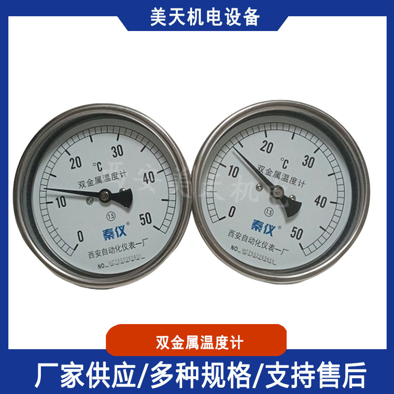双金属温度计具有无汞害、易读数、防水、 防腐蚀、耐震动等优点,广泛应用于电站、 机械、化工、纺织、石油、食品等工业和科研部门。