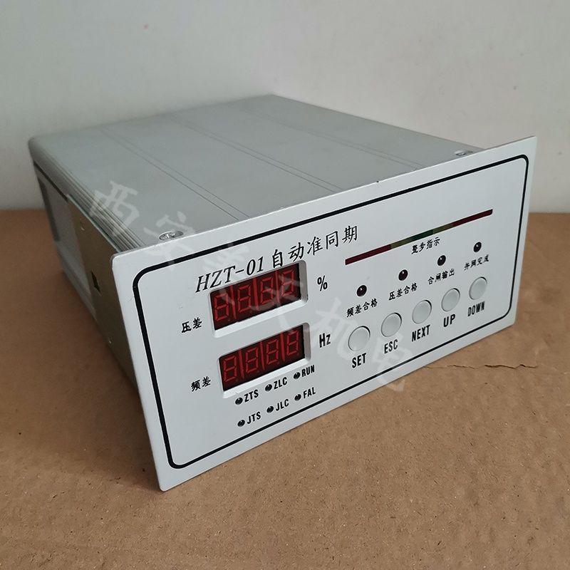 有自动转速和电压调节控制的场合,HZT-01装置在进行准同期过程中能有效的进行调频和调压控制。在装置面板上电压差、频率差数值,可直观的观察同期并网的条件是否成立,以便尽快促成准同期条件到来。由于采用成熟的角度预测技术,能有效准确的捕捉